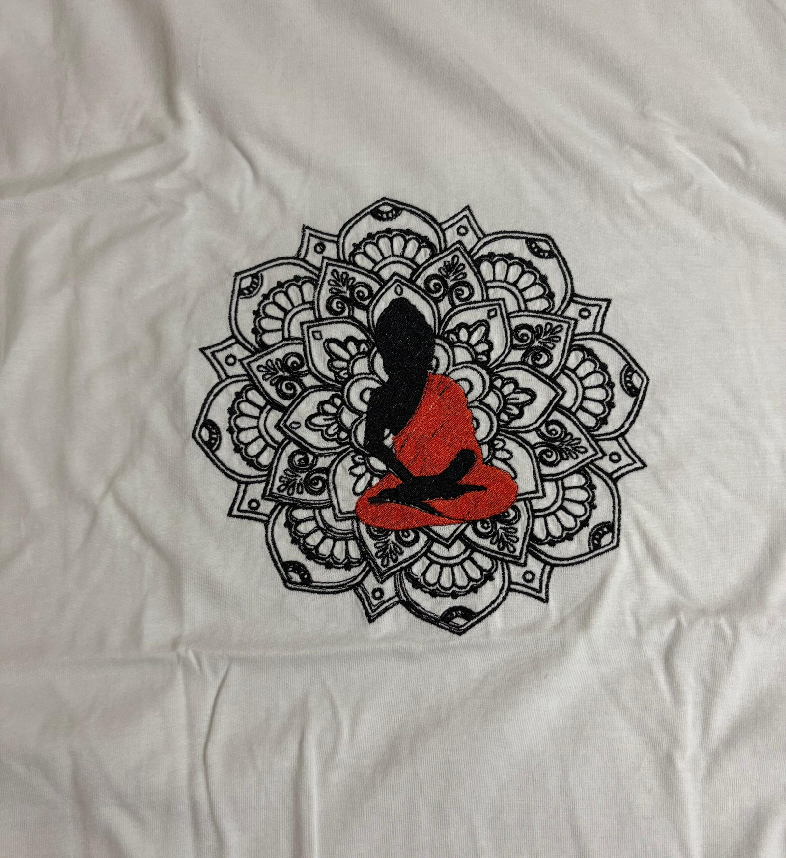Elevate your style with our White Mandala Buddha T-Shirt, expertly crafted from premium, breathable cotton for all-day comfort. The centerpiece features a striking mandala with a peaceful black Buddha figure and vivid orange accents, blending spiritual symbolism with contemporary flair. Ideal for yoga enthusiasts, art lovers, and anyone seeking a unique, meaningful addition to their wardrobe. Available in a range of sizes to ensure the perfect fit.