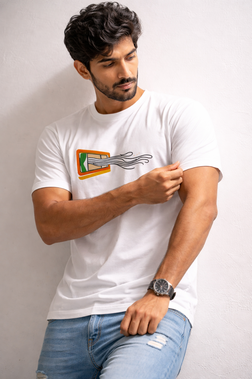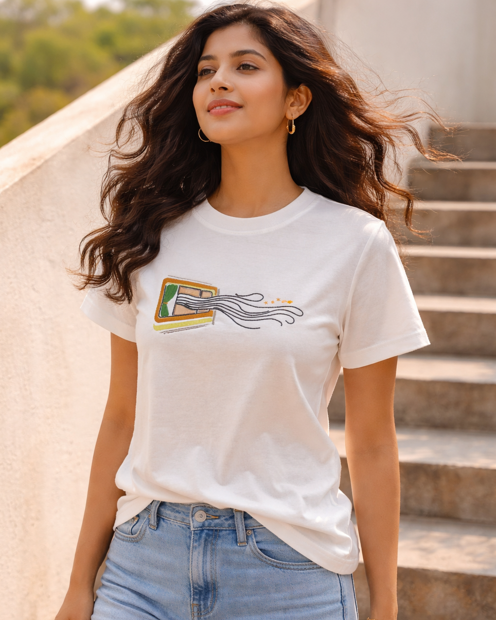 Sometimes, a window feels like a blessing—especially in the middle of the day. The breeze flowing in, the curtain drifting to one side, that quiet feeling of home. No matter how high the AC is, this natural air feels like heaven. A calm, comfortable design on a simple white tee.